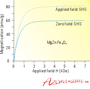 图2。第一象限为软磁铁氧体磁滞回路,MgZnFe4O8由燃烧合成反应和没有援助的1.1 t的磁场。 |